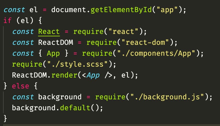 I have permission to access the bookmarks and local storage, I have a script running on the background to do the syncing, and a popup where the user will be able to see the syncing progress, kinda like you can by clicking the dropbox icon o the menu bar. I'm using webpack to bundle the js, you can notice by the "dist/bundle.js", but, since webpack generates only a single bundle (or at least I'm going with it that way), I have to use the same file on my popup.html too: